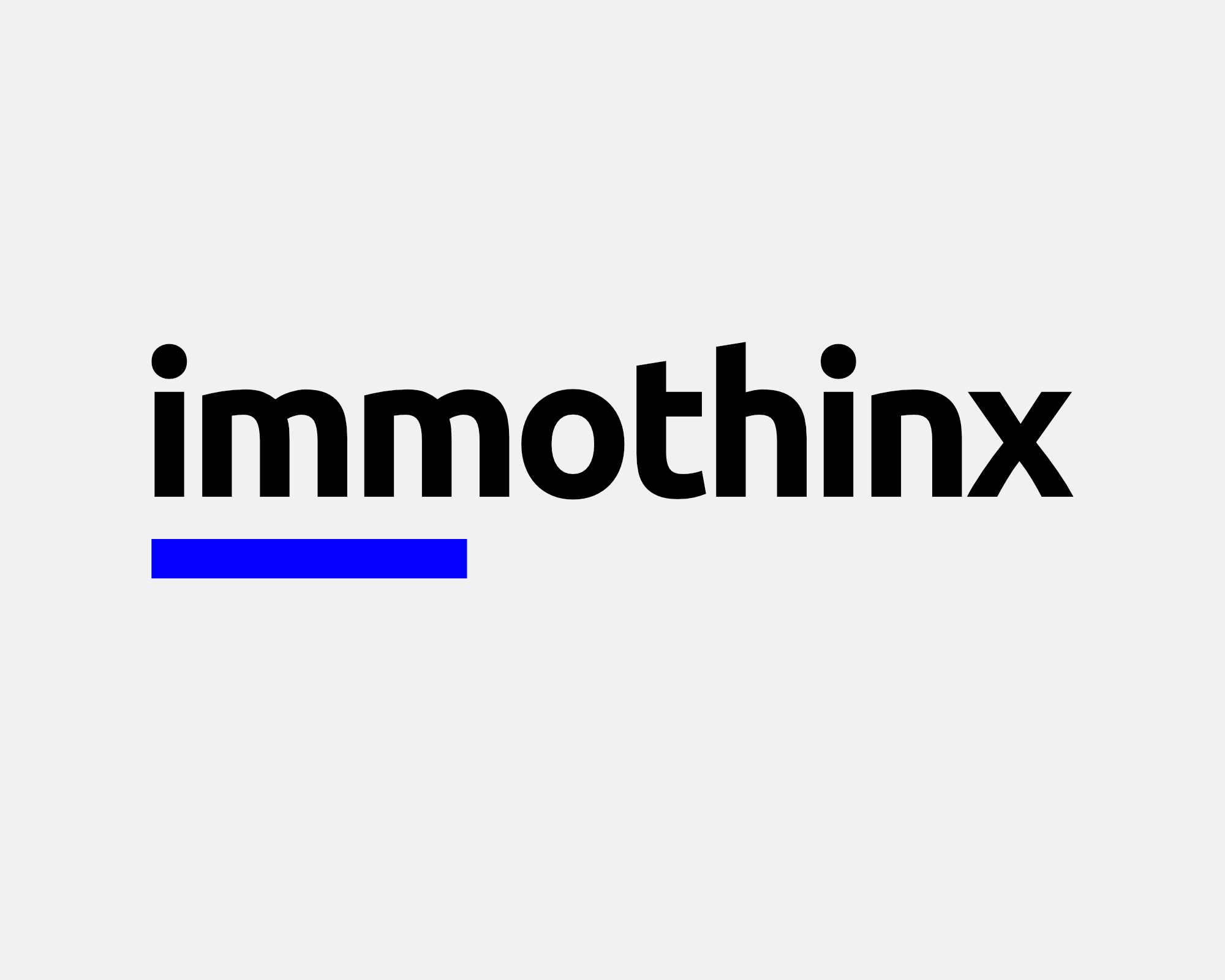 Das Branding von immothinx ist auf eine hauptsächlich digitale Unternehmenskommunikation ausgerichtet. Das Brand betont in seinen Formen Festigkeit im Sinne „gebauter“ Solidität ohne allzu statisch zu wirken.